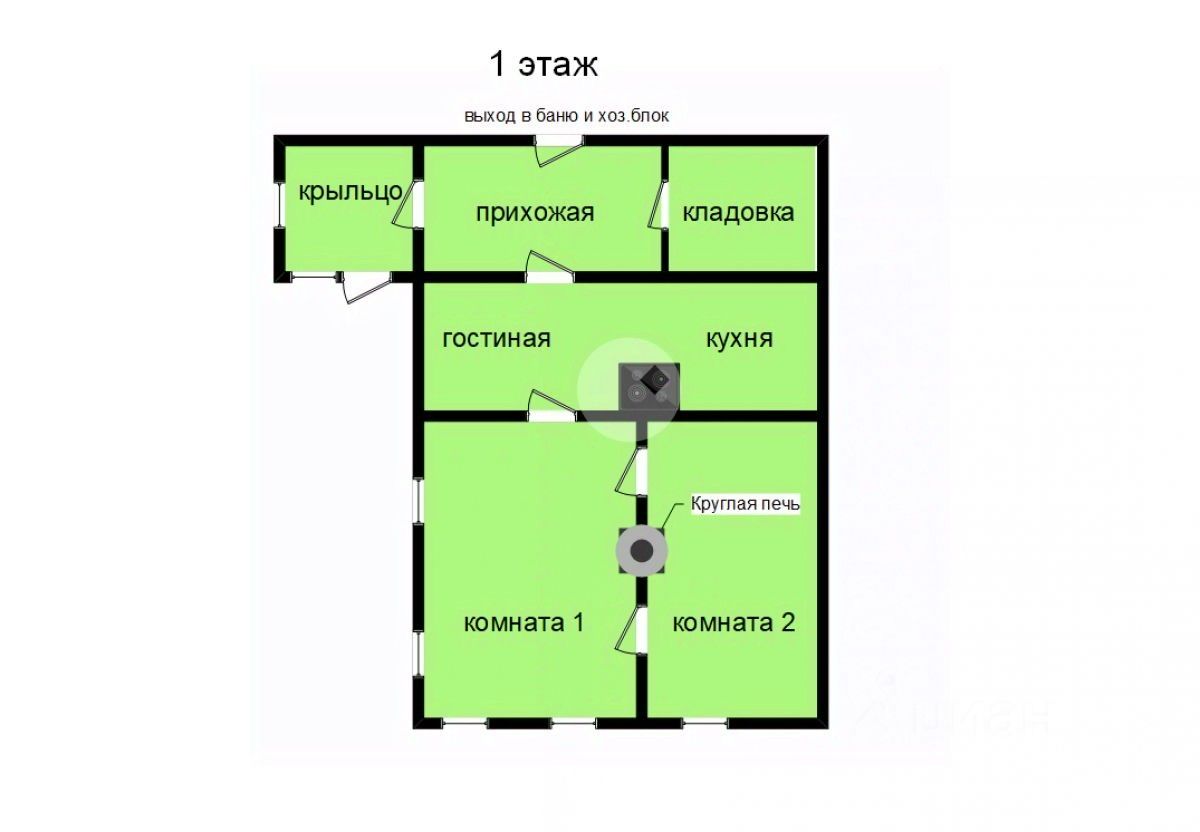 Большой жилой дом построен в 1970 году из бревна и обшит вагонкой. Фундамент - ж/б блоки и ленточный фундамент. Кровля - шифер, окна - металлопластиковые стеклопакеты. В доме три комнаты, кухня, бревенчатая пристройка + хозкомната, из которой можно сделать сан/узел. Высота потолка в доме 280 см. Под домом большой подвал. Отапливается дом печью- плитой и круглой печью. Зимой в доме очень тепло.
