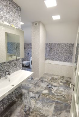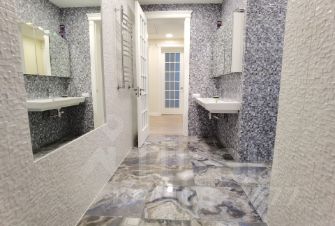 Хозяйке понравится просторная кухня из массива с лучшими образцами техники Siemens, и конечно, необычная зелёная столешница из бразильского гранита, играющего на солнце крупными драг вкраплениями, понравится своя гардеробная комната и особый уют созданный в доме. Если Вы ценитель брендов, мы собрали все самое лучшее Сантехника - Villeroy & Boch, испанская плитка за ту мач евро за м2, текстильные, с добавлением шелка итальянские обои Piterra, все двери нестандартной высоты выполненные из дуба, как и все подоконники, паркет и тп