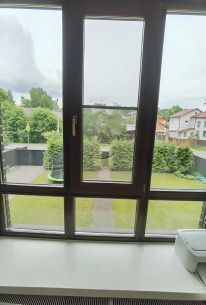 Сзади дома многоэтажный дом, но он абсолютно никак не мешает и сам коттедж перекрывает вид на лужайку для окон многоэтажки, Вас не видно! Важно учесть, при проектировании все панорамные окна кухни, гостиной и спален выходят в обратную сторону на лужайку с газоном и всегда зелеными туями. В сторону многоэтажки смотрят затонированные окна ванных комнат, хоз блоки, котельная, лестница и тп. Плюс между многоэтажкой и домом находится ещё домовладение с прекрасным зеленым садом.