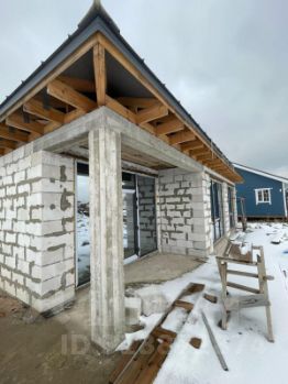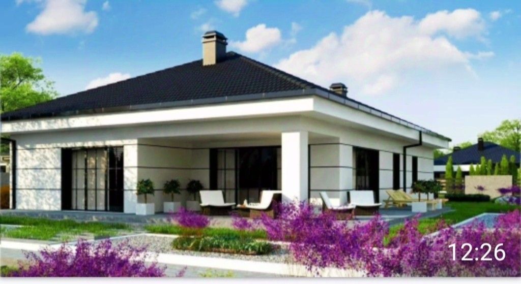 Одноэтажный дом расположен на участке 7.5 соток. На участке проведены дренажные работы. Электричество 15 КВт, по границе массива проходит газ. Фундамент дома - ж/бетонная плита, материал стен - пеноблоки, стоимость включает постройку с теплым контуром. Продуманная планировка дома включает в себя: