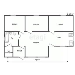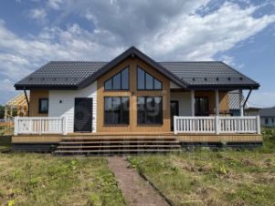 Продаётся НОВЫЙ СОВРЕМЕННЫЙ ДОМ для круглогодичного проживания, построенный по КАРКАСНОЙ ТЕХНОЛОГИИ. Размеры: 9,513 м. Общая площадь составляет 123,5 м², площадь тёплого контура — 95 м².