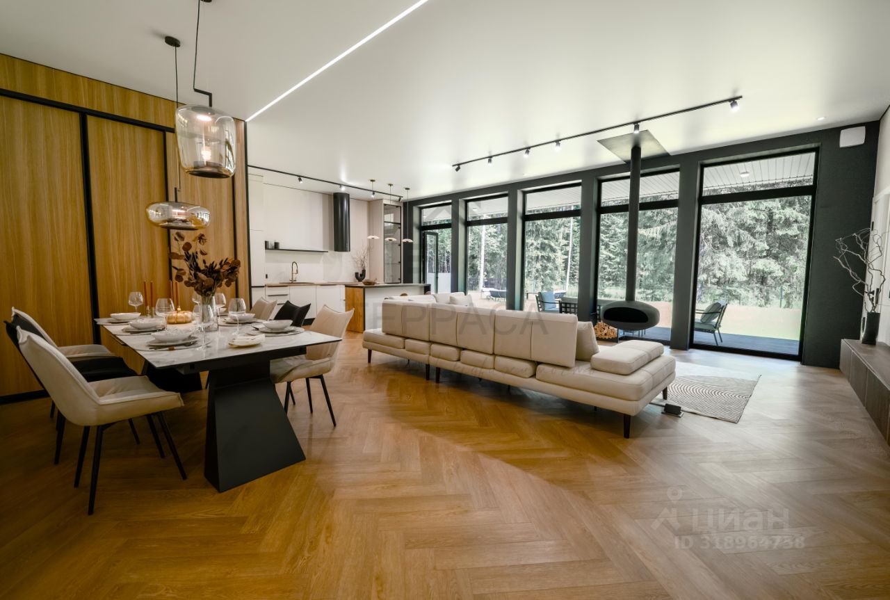 Современный дом в уникальной локации - у самого леса - в тишине, среди высоких деревьев и чистого воздуха. Внутри - дизайнерский интерьер с выразительными текстурами и декором. Панорамные окна стирают грань между пространством дома и природой, а камин наполняет атмосферу теплом и уютом. Просторная крытая терраса идеально подойдет для завтраков, отдыха или вечеринок. Бассейн, баня, и зона барбекю формируют настроение загородного курорта - всё создано для комфортной жизни без компромиссов.