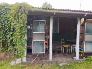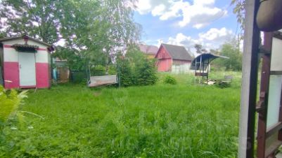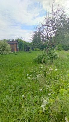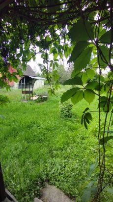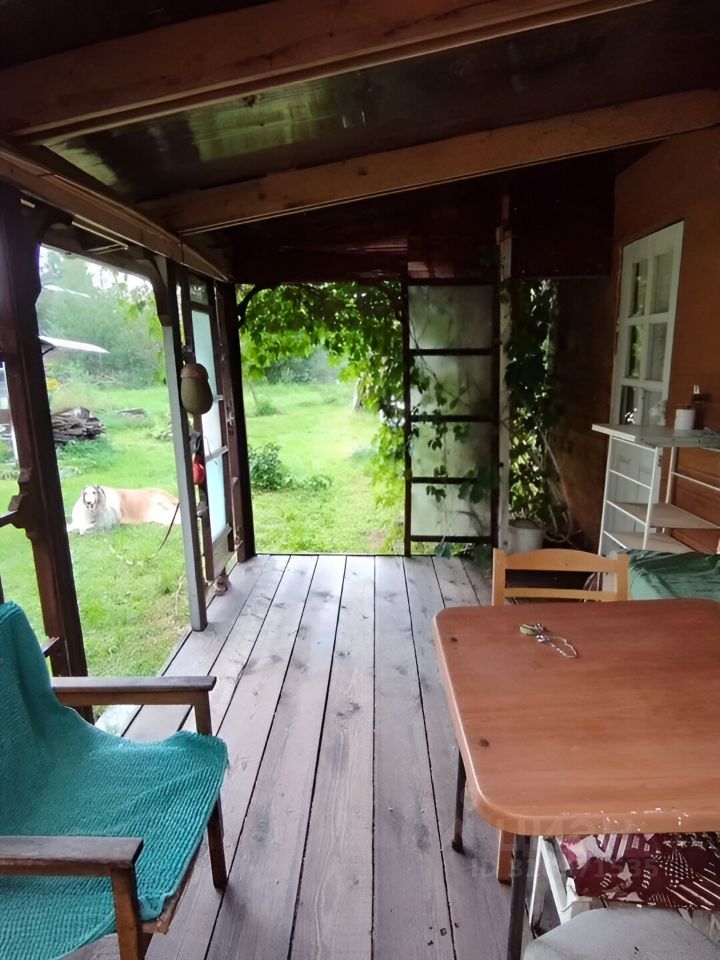 Домик стоит позади участка, в углу, что даёт возможность построить хороший дом на участке, а в этом временно жить.