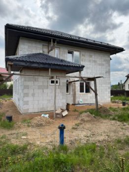 Установлена канализационная станция с выводом в дренажную канаву. Сделана скважина, к дому подключена.