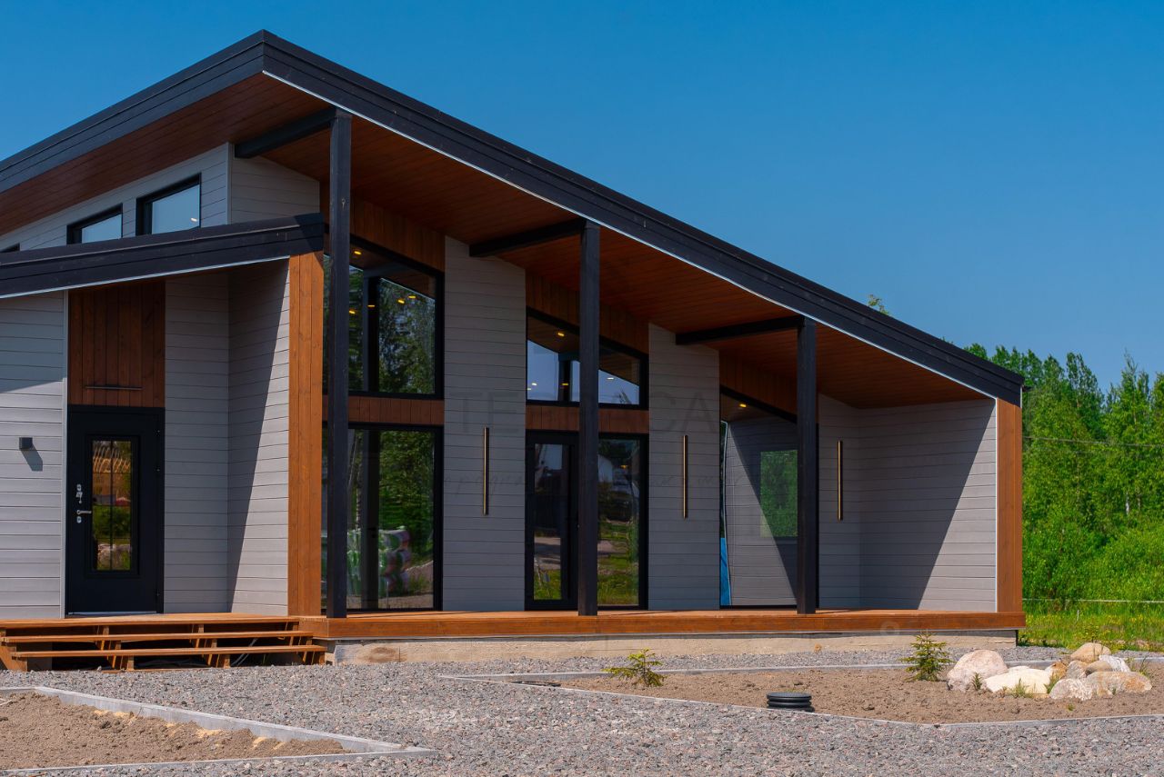 Современный дом из натуральных материалов гармонично сочетает экологичность и долговечность.