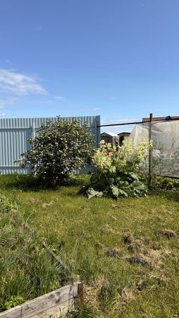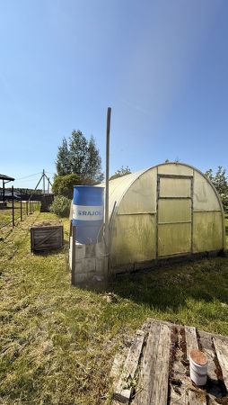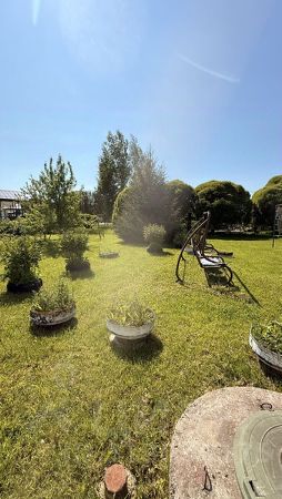 На участке отведено ровное место для строительства второго дома. Участок разработан. Земля плодородная. Рядом с домом забиты сваи для террасы.