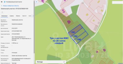 Кадастровые номера участка: 47:03:0216001:191/192 (или 192/190). Координаты для навигатора: 60.927098, 30.003448.