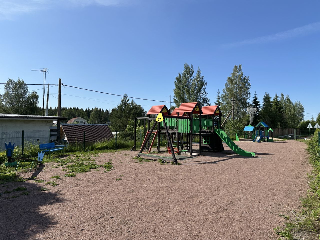 Въезд в поселок закрывается откатными воротами (открываются по звонку), на территории поселка есть камеры видеонаблюдения, уличное освещение, детская площадка, продуктовый магазин и место для сбора и вывоза мусора. Зимой дорога всегда почищена, нет проблем с проездом даже на низкой машине.