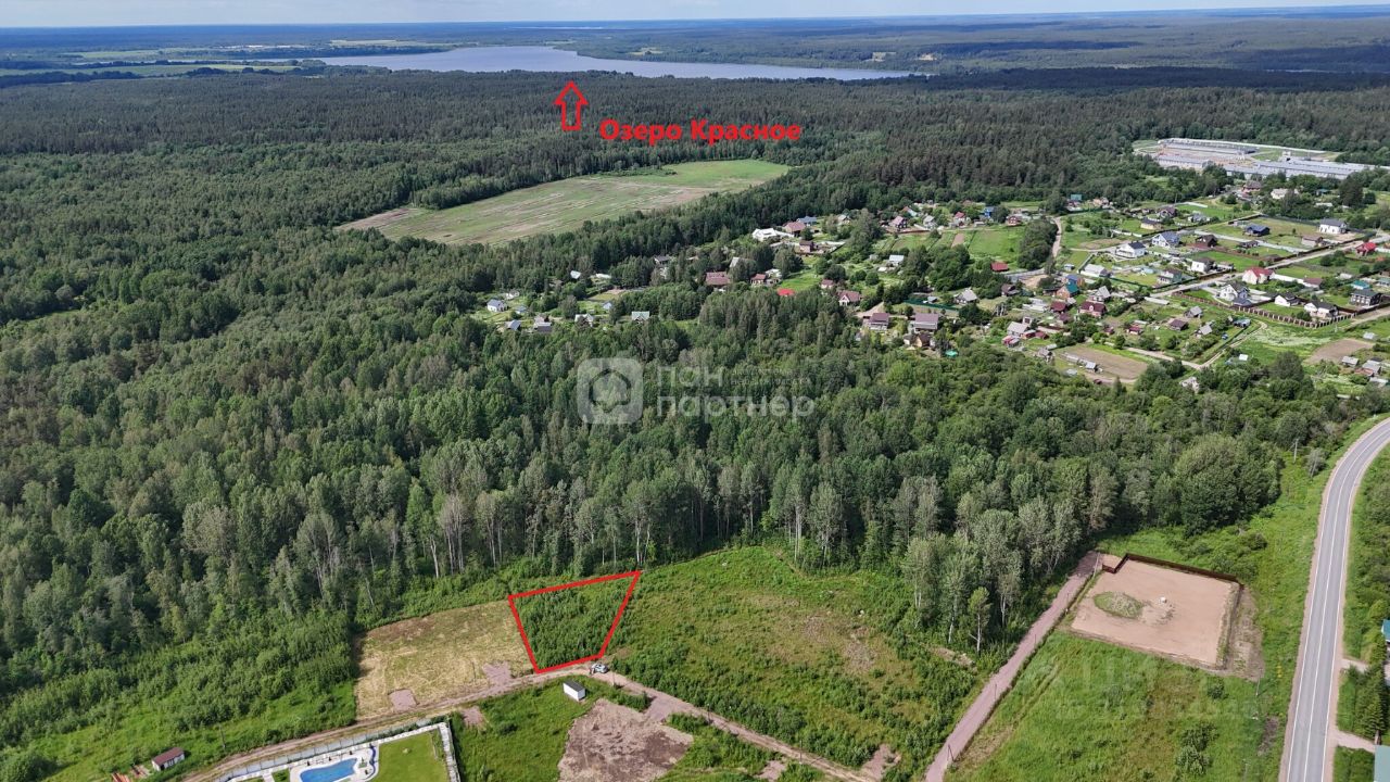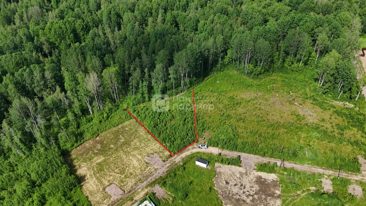 В продаже видовой участок в посёлке Коробицыно граничащий с лесным массивом в 76 км от Санкт-Петербурга.