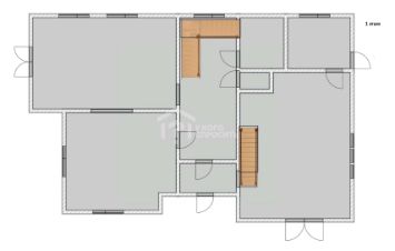В доме пять комнат: общая жилая площадь составляет 131 кв. м, площадь кухни — 25,8 кв. м. Есть один балкон, два раздельных и два совмещённых санузла. Косметический ремонт позволяет новым владельцам воплотить свои дизайнерские идеи.