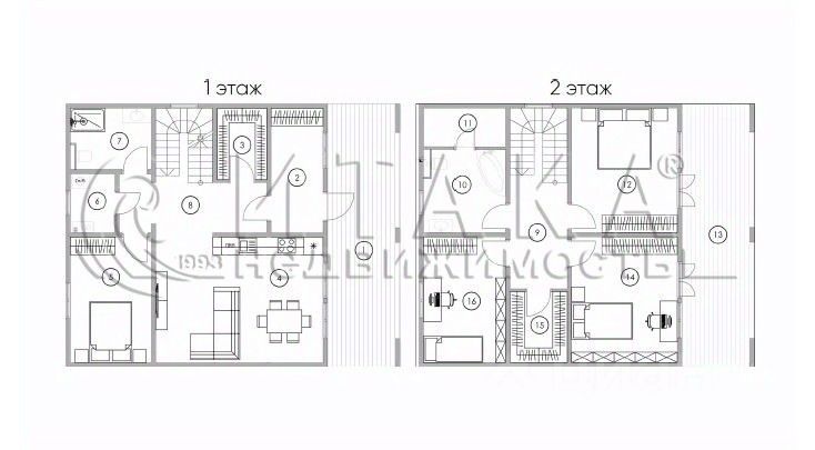 Высота потолков 2,70 м. 4 спальни, 2 гардеробные, постирочная, 2 санузла, сауна, 2 террасы. Кухня-гостиная 24,6 кв.м.