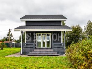 Дом покрыт мягкой кровлей, которая обеспечивает тишину в дождливую погоду.Фасад выполнен с имитацией бруса, скрытая электрика, а каркас выполнен из качественной строганой доски