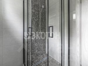 гостиная с выходом на террасу 3 х 6 метров, панорамные окна и дверь позволяют наслаждаться живописным видом. Дом включает 2 санузла (душевая на первом этаже,