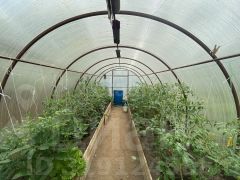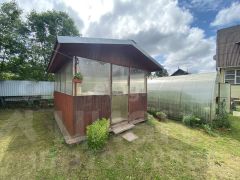 Участок благоустроен и продуман до мелочей. Здесь есть баня из бревна, две теплицы для выращивания овощей, хозяйственный блок для хранения инвентаря, беседка для отдыха и детская площадка в виде корабля — отличное решение для семей с детьми.