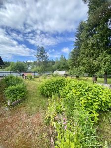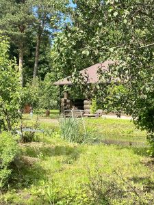 Участок большой , ровный , на участке свой живописный пруд, плодовые деревья и кустарники, все обильно плодоносит , цветники.