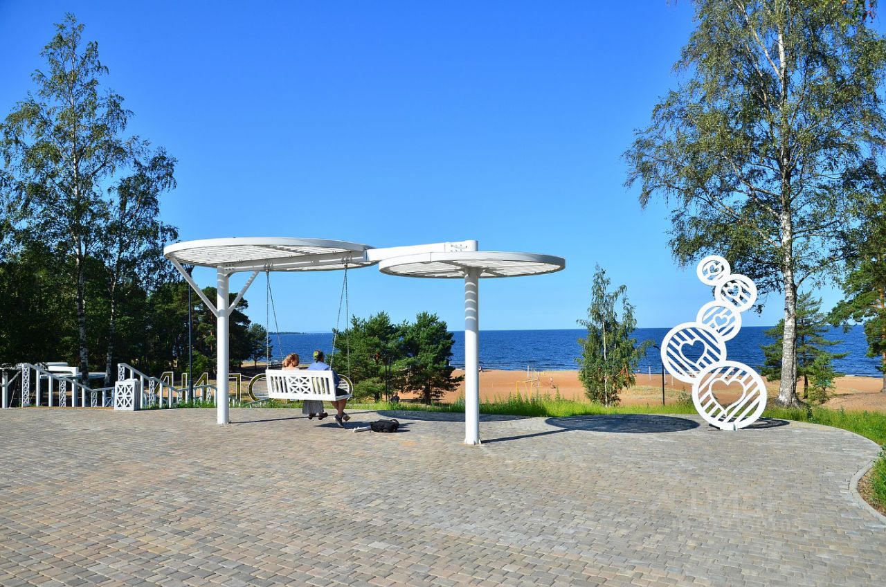 Вдоль пляжа проходит велодорожка, ведущая к парку Приморский. Приморский парк — одна из жемчужин Соснового Бора. Это комфортное пространство для активного отдыха, культурного времяпровождения, семейных прогулок и фотосессий.