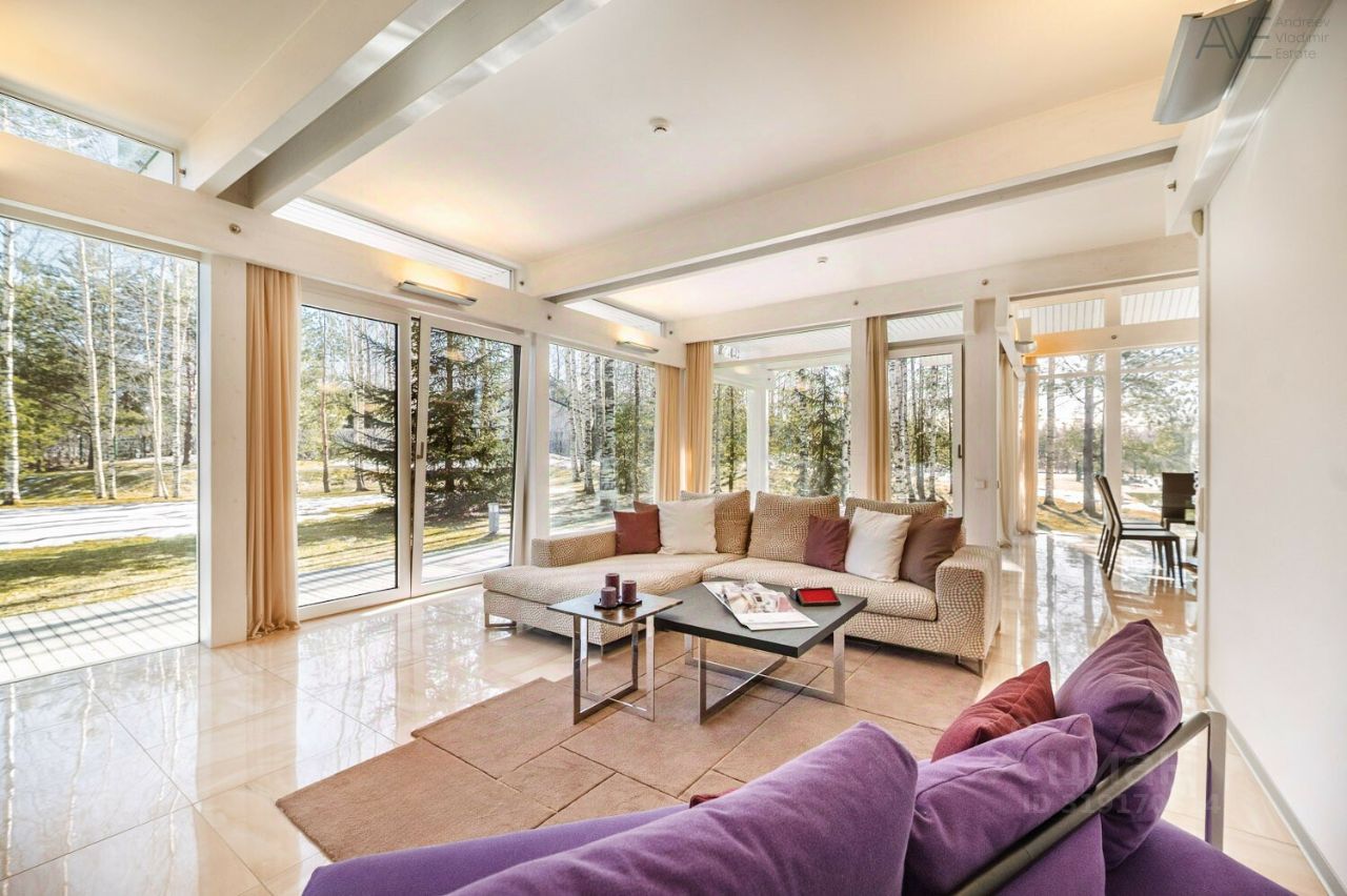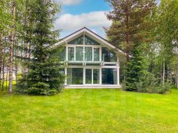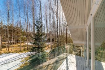 Идеально вписанный в природный ландшафт коттеджного поселка, этот дом сочетает строгую геометрию современного дизайна с теплом натуральных материалов. Панорамные окна наполняют интерьер естественным светом и открывают захватывающие виды на живописный участок площадью более 30 соток.