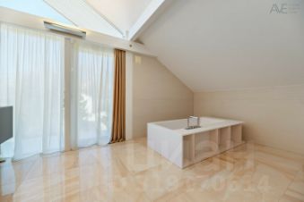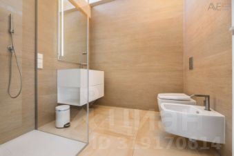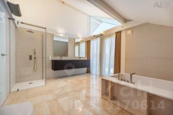 Второй этаж: три спальни с балконами, дизайнерский санузел с панорамным остеклением, в котором есть ванна, душевая, биде и раковина.