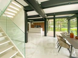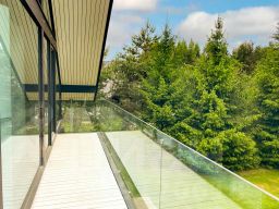 Лестница из выбеленного дуба со стеклянными ограждениями