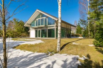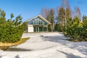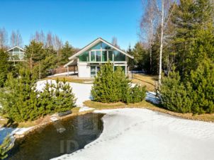Идеально вписанный в природный ландшафт коттеджного поселка, этот дом сочетает строгую геометрию современного дизайна с теплом натуральных материалов. Панорамные окна наполняют интерьер естественным светом и открывают захватывающие виды на пруд и живописный участок площадью более 18 соток.