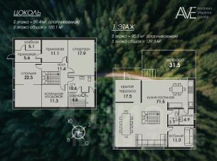 Общая площадь: 522,3 м² (включая террасы и эксплуатируемую кровлю)