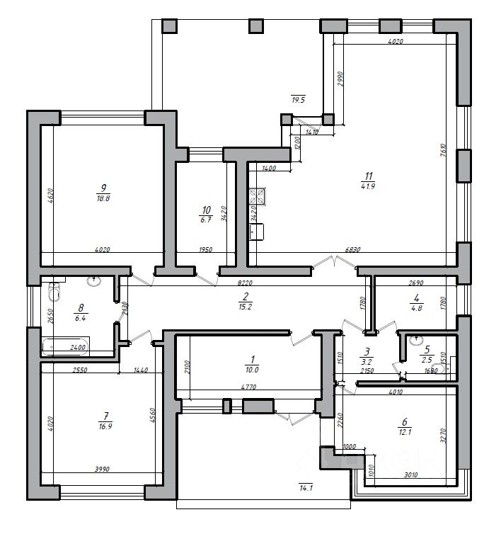Большая кухня-гостиная (41 м2) с выходом на крытую террасу