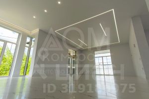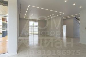 Внутри натяжные потолки со светодиодной подсветкой, во всех комнатах теплый пол с датчиками температуры, стены - фактурная штукатурка под покраску, полы - на первом этаже керамогранит на втором паркетная доска .