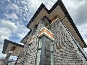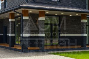 Фундамент монолитная плита, стены - монолитный полистеролбетон, с превосходной тепло и шумоизоляцией выполненный в соответствии с ГОСТ 33929-2016, внешняя отделка - лиственница, искусственный камень и клинкерная плитка, крыша- мягкая черепица.