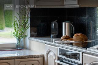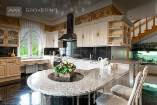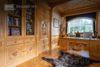 Интерьер выполнен в классическом загородном стиле с обилием натурального дерева как в отделке и мебели, так и на полу уложен качественный дубовый паркет. В этом доме вас ждут уютные вечера в семейном кругу у мерцания огня в камине, захватывающие интересные книги в библиотеке и, конечно, поддержание здорово духа в сауне с бассейном.
