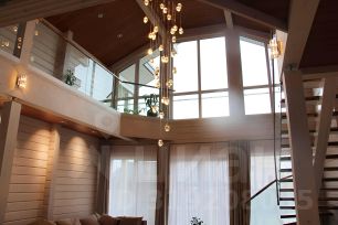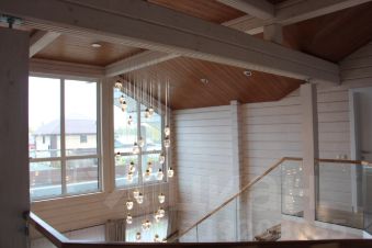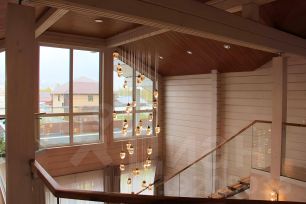 Высокие натяжные потолки в сочетании с натуральным кедром. Идеальное освещение пространства в каждом помещении.