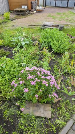 На участке расположены дом, хозяйственный домик, клумбы с цветами, фруктовые деревья и ягодники. Участок дренирован и огорожен.