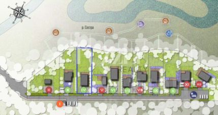 Дом расположен в клубном посёлке "Ветви Репино" всего на 11 домовладений. Поселок со всех сторон окружен лесом. Участок выходит на берег реки Сестры. На другом берегу расположен государственный охраняемый заказник. Высокий уровень приватности и безопасности.