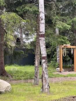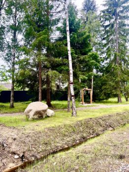 Участок стоит на возвышенности и всегда сухой. На участке есть деревья и ели. Межевание сделано.