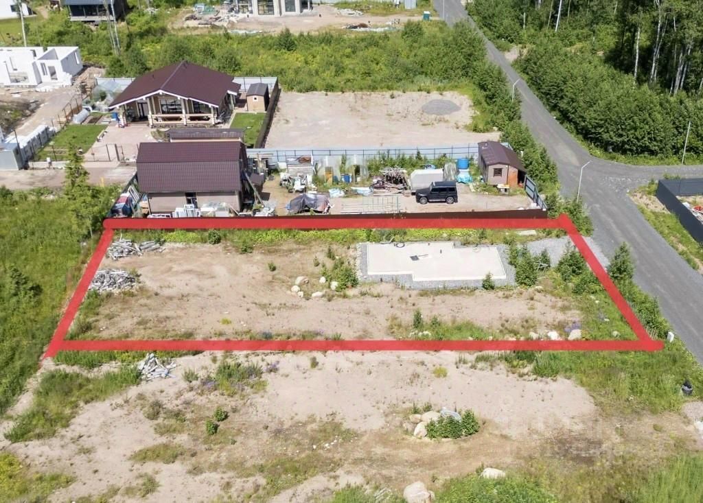 В продаже участок с фундаментом 10 соток, ИЖС с правильной формой и сухим, ровным рельефом. Отсыпан песком по периметру, сделан дренаж.
