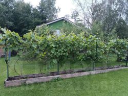 Участок 13 соток, часть разработана для грядок, 2 парника, кусты смородины, крыжовник, сад яблони, груши, сливы, вишня, виноград. Часть участка густой газон для активного отдыха, бассейн.