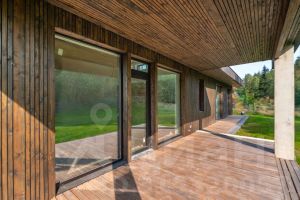 На ровном участке правильной формы площадью 15 соток стоит современный одноэтажный дом площадью 195 кв.м. Участок подготовлен: сделан дренаж, отсыпка, оставлено место для бани, гостевого дома или навеса для машин.