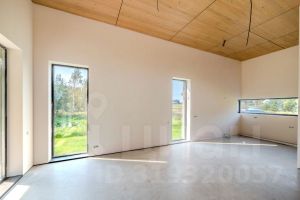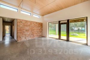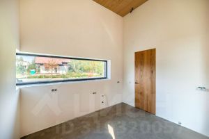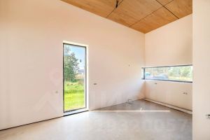 Внутри дом делится на два блока: в спальной зоне две изолированные комнаты, просторная ванна, мастер-спальня с санузлом и нишей под гардероб. В кухне-гостиной потолки достигают 4 метров, через портальную дверь из гостинной можно выйти на просторную террасу.