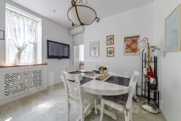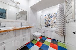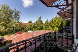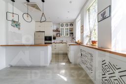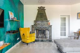 На втором этаже расположена основная кухня-столовая, оборудованная всей необходимой бытовой техникой. Также здесь находятся просторная гостиная 30 кв.м. с балконом и шикарным камином, украшенным настоящими изразцами и мастер-спальня с отдельным санузлом и гардеробной.
