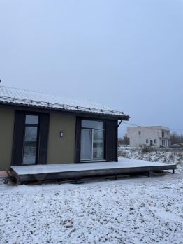 Дом:Фундамент: плита 250 ммСтены: Газобетон 400 мм Фасад: декоративная штукатурка и планкен из натурального дереваОкна: качественные двухкамерные стеклопакеты профиль Veka 70 ммКровля: металлочерепица Grandline