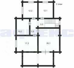 - Дом построен из экологически чистого материала — натурального бревна, создающего атмосферу тепла и уюта.