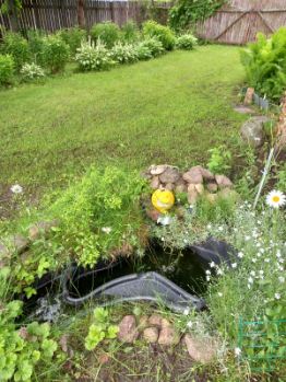 На участке выполнены дренажные работы, поэтому дожди не страшны. Собственная скважина с системой фильтров. Вода разведена в дом, баню, подается также в пруд и теплицу.