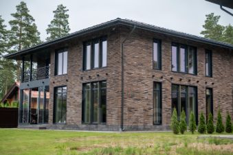 Отделка фасада выполнена с использованием клинкерной плитки. В интерьере - на кухне столешницы из натурального гранита. Подоконники изготовлены из травертина с системой подогрева.