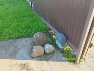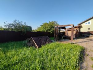 Участок 10 соток (межевание сделано), правильной формы, огорожен забором из профлиста, электрические откатные ворота, площадка у дома выполнена из плитки, под парковочное место залита бетонная площадка (на два автомобиля). По всему участку выполнена дренажная система. На участке располагается хоз. постройка, шикарная барбекю зона.