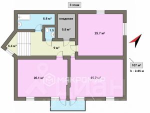 Третий этаж: Три большие спальни (две с выходом на балкон), кладовая и ванная комната.