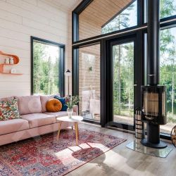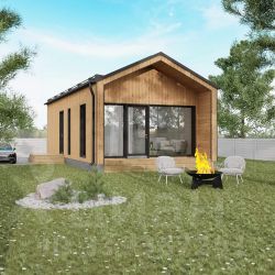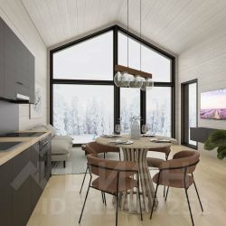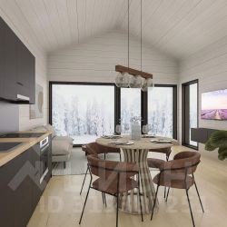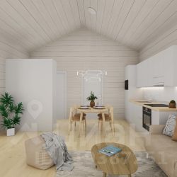 Внутри дома спальня и просторная кухня-гостиная. Потолки высотой 3 метра создают ощущение пространства. Дом можно дополнительно укомплектовать техникой и мебелью за отдельную плату — все для вашего удобства и комфорта.