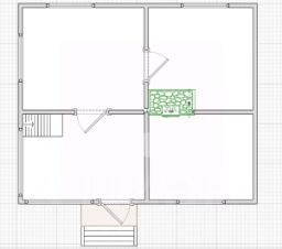 На первом этаже расположена кухня с печью, просторная светлая веранда и две жилые комнаты.