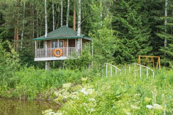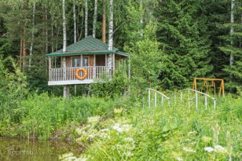 Баня с купелью, душем и гостевой комнатой для расслабления и оздоровления.