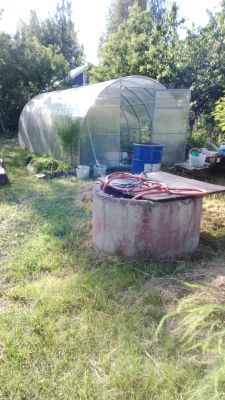 Участок разработан. Есть теплица, несколько яблонь, кусты смородины, жимолости, крыжовник, сирень.