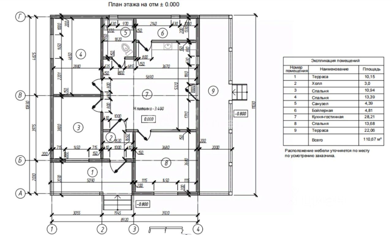 До мелочей продуманная планировка дома позволит комфортно проживать даже большой семье: просторная кухня-гостинная будет объединять всех членов семьи вместе, а три отдельные спальни создадут комфортное пространство для каждого в отдельности. Две терассы позволяют увеличить пространство дома, организовав не только обеденное пространство на свежем воздухе всей семье, а также место для работы или отдыха.