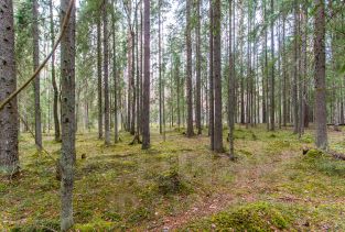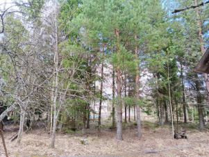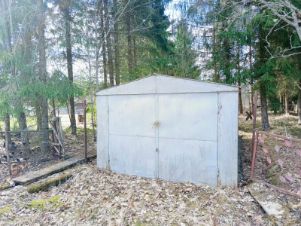 Участок 18 соток. На участке растут ели и сосны, брусника, черника. Есть заезд для автомобиля (гараж). В саду плодовые деревья и кустарники.
